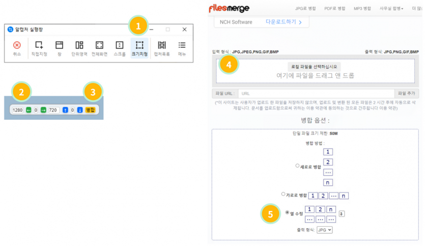 병합 프로그램에서는 5*3 이기 때문에 n는 5를 입력하면 됩니다.
